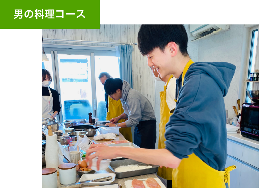 - 包丁の使い方から、こだわりの一皿まで。 初心者も大歓迎!プロの指導で、男の料理を楽しく学べます。